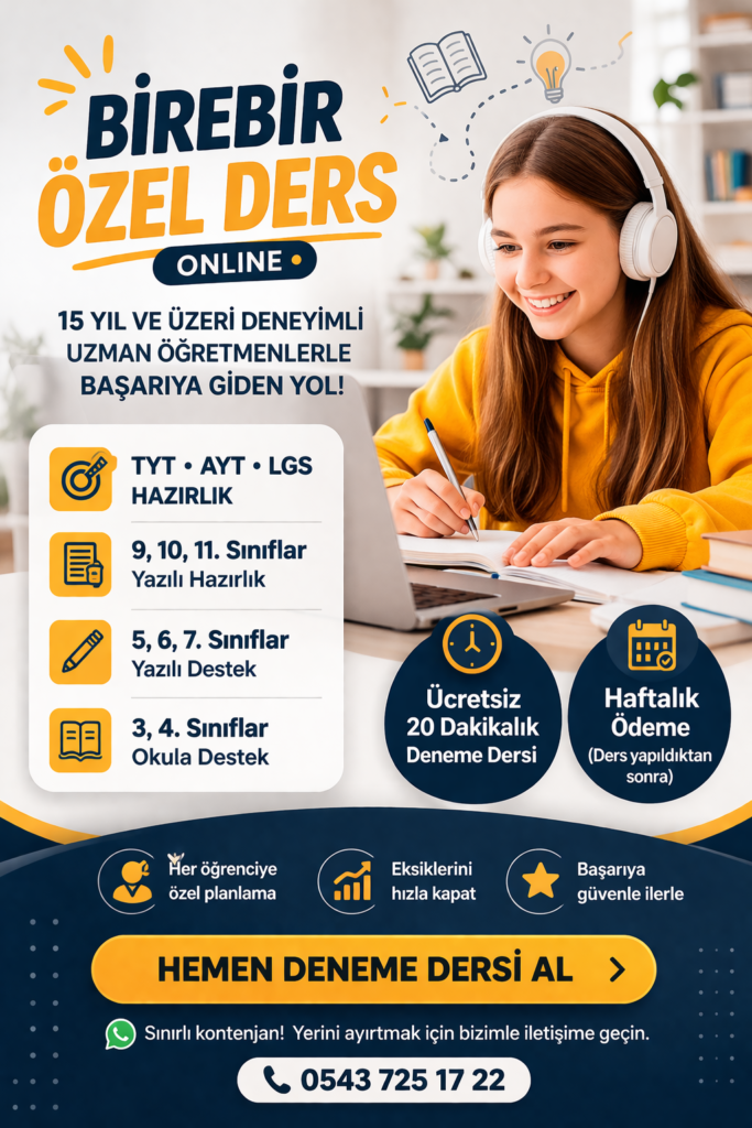 15 yıl ve üzeri deneyime sahip uzman öğretmen kadromuzla, öğrencilerimize seviyelerine uygun birebir online ders imkânı sunuyoruz.